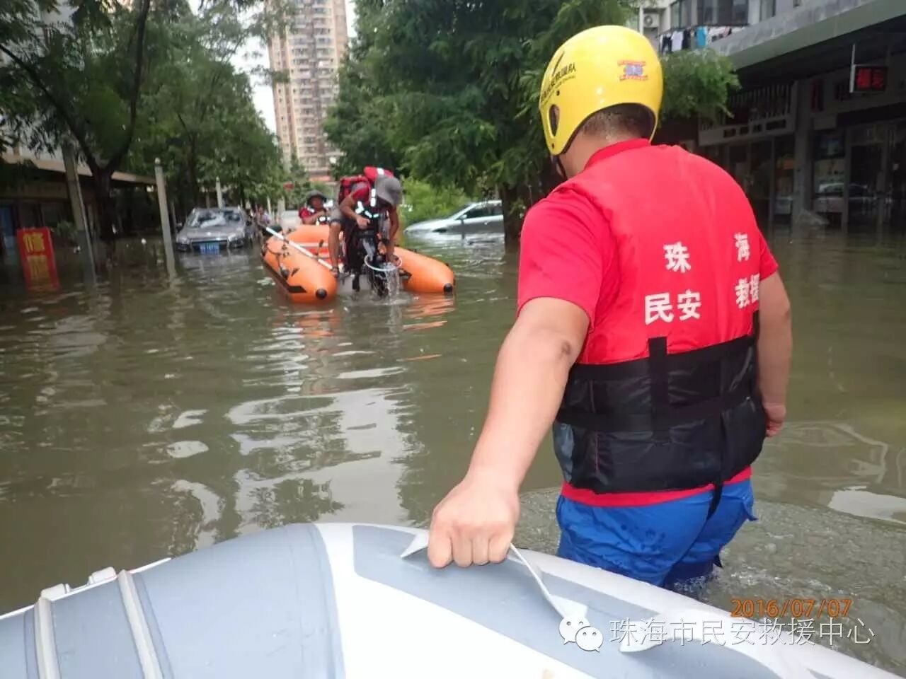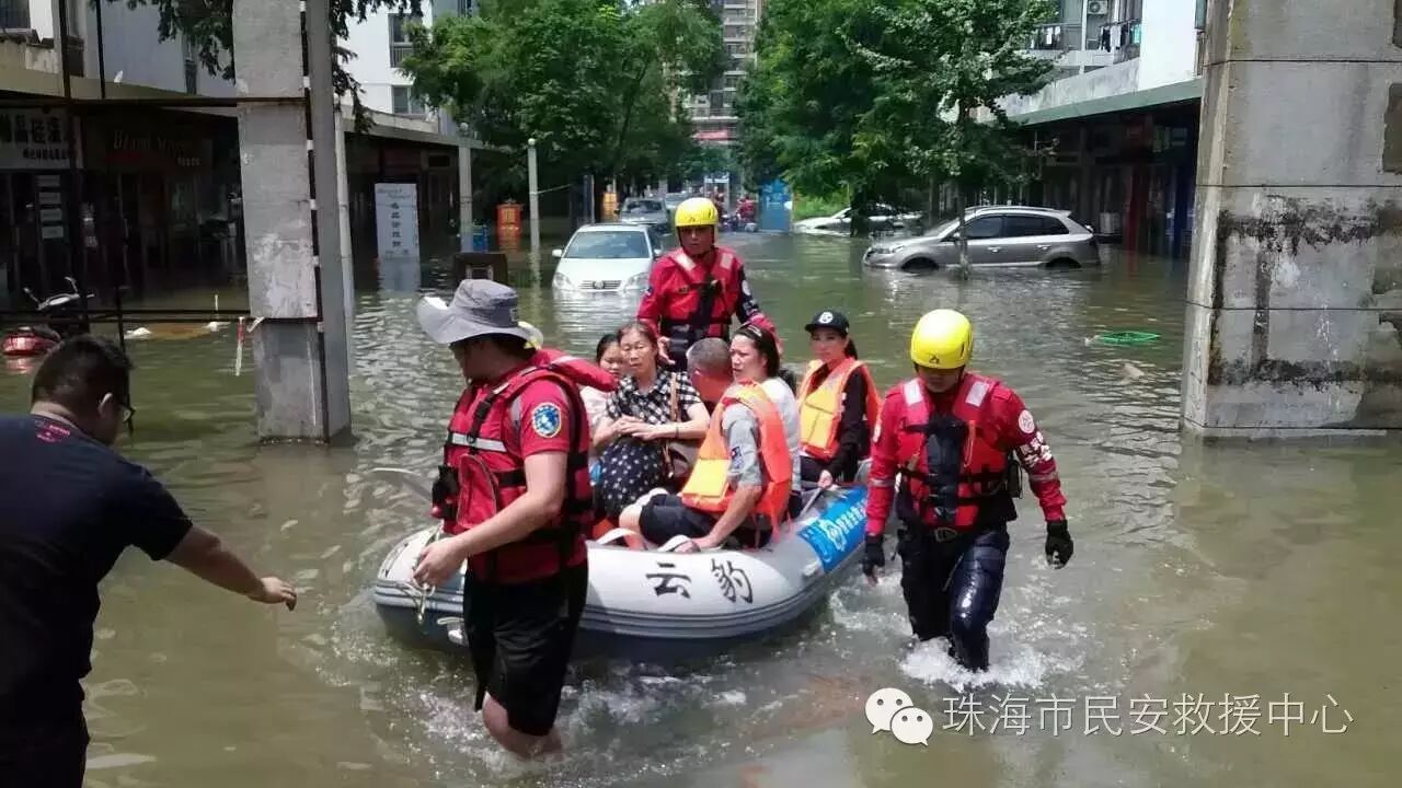 时间:20160706-09 地点:武汉 事件:赴武汉受水灾影响地区支援 2016年7月6日上午11:00 珠海民安救援队在珠海备齐装备出发。 6日晚上8点左右 珠海民安救援队队员安全到达受灾区。 2016年7月7日上午10:15 接警方通知 南湖风华天成小区有一千多名群众被困,民安救援队接到指令与云豹救援队联合出警(出四艘冲锋舟)。 积极备勤中 10:45 正式出发前往目的地。 11:50 到达南湖小区,救援行动随即展开。 一名哮喘病发作的患者,坐上冲锋舟之前吸入缓解哮喘喷剂。 被困居民陆陆续续被安全救出。